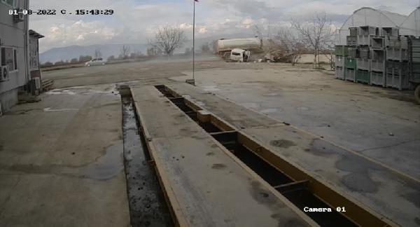 Öte yandan, trafik kazası bir iş yerinin güvenlik kamerasına saniye saniye yansıdı. Görüntülerde, dönüş yapmak isteyen kamyonete, sıvı gübre yüklü tankerin hızla çarptığıı görüldü. Çarpışmanın etkisiyle kamyonet ikiye bölünürken, tanker ise yan devriliyor.