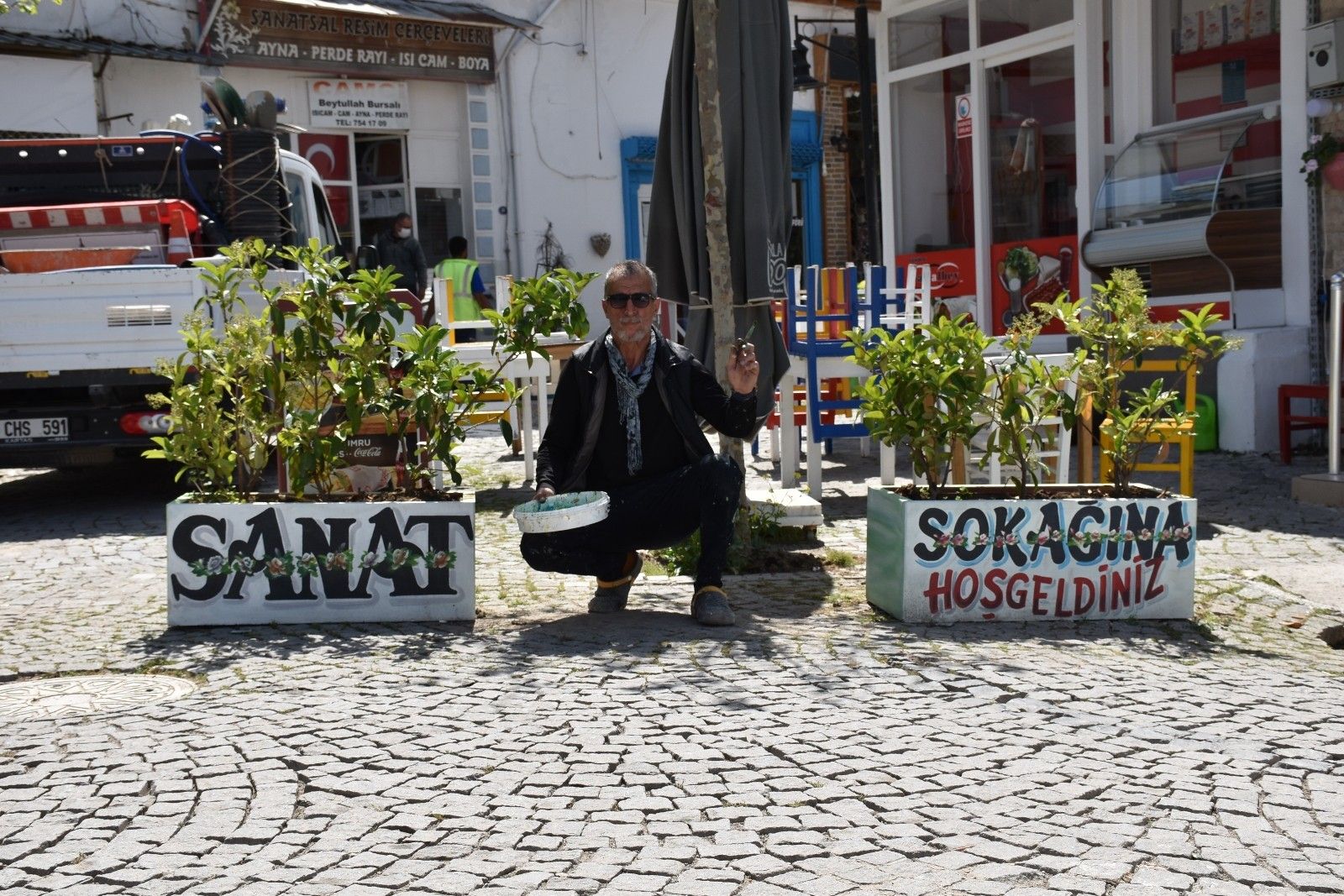 15 yıl önce kansere yakalanan 60 yaşındaki Atilla Uçan, hastalığını adeta resim yaparak yendi. Urla, Karaburun, Seferihisar, Mordoğan'da sokakları ve caddeleri resimleri ile süsleyen Uçan'ın resimleri, Karaburun Nergis Festivali ve Uluslararası Enginar Festivali'nde de baş köşeleri süsledi. Çöp konteynerleri, elektrik trafo duvarları, çiçeklikler, boş kaldırımları çizdiği resimler ile renklendiren Uçan, Urla Sanat Sokağı'nı birbirinden renkli yağlı boya resimlerle doldurdu. Uçan'ın 100'e yakın çiçek saksısına çizdiği birbirinden güzel resimler ise, sanat sokağını dolaşmaya gelen misafirlerde hayranlık uyandırıyor.