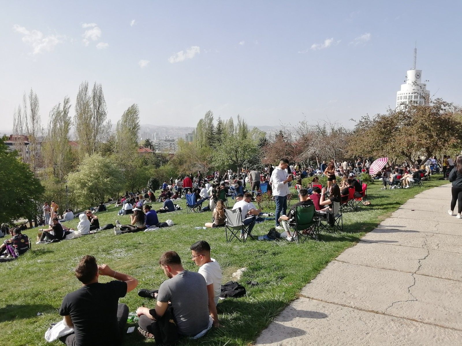 Çankaya'da bulunan Seğmenler Parkı tam kapanma kısıtlamasına saatler kala doldu taştı. Korona virüs salgına karşı alınması gereken en önemli kurallardan biri olan sosyal mesafe kuralını hiçe sayan yüzlerce kişi salgın tehlikesi yokmuş gibi parka akın etti. Pandemiyi yok sayan vatandaşlar, hem kendi sağlıklarını hem de diğer insanların sağlığını hiçe saydı. Sıcak havayı fırsat bilen vatandaşlar tam kapanma kısıtlamasına az bir süre kala alınan tedbirlere riayet etmedi.