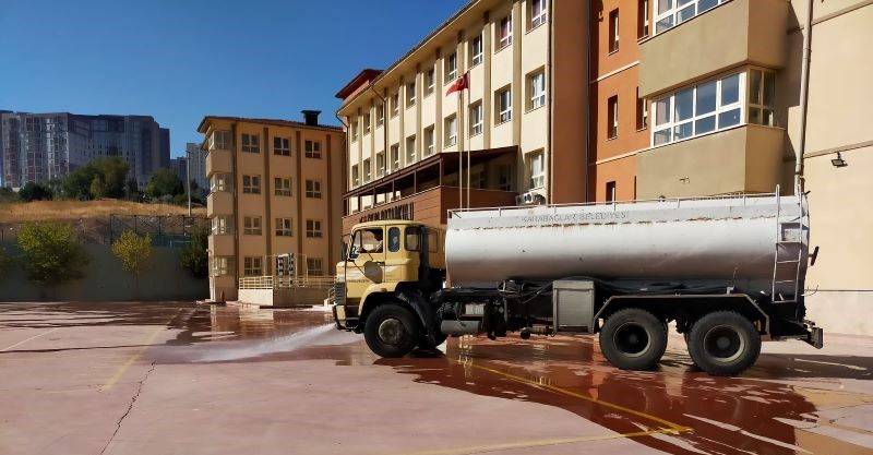 Karabağlar Belediyesi, dün başlayan yeni eğitim öğretim dönemi öncesi ilçedeki ilk ve orta dereceli okulların bahçe bakım ve temizliklerini yaptı. Karabağlar Belediyesi Temizlik İşleri Müdürlüğü'nün çok sayıda ekip ve araçla yürüttüğü çalışmalar kapsamında, okulların bahçeleri elle ve süpürge araçlarıyla süpürüldü. Araçların manevra yapabileceği geniş bahçesi olan okullar ise tankerle yıkandı.