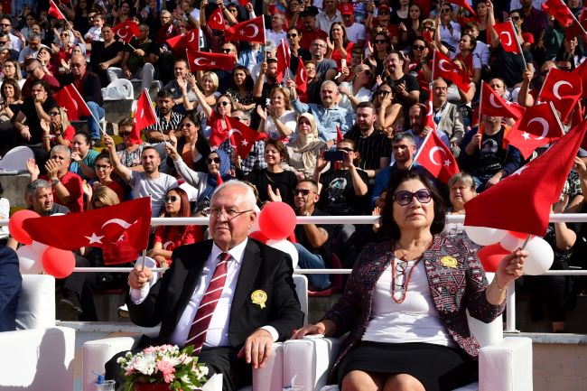 Karabağlar Belediye Başkanı Muhittin Selvitopu ve eşi Fügen Selvitopu, Cumhuriyet’in 100.yılı etkinlikleri kapsamında ilçede bulunan Övgü Terzibaşıoğlu Anadolu Lisesi’nde düzenlenen törenlere katıldı.