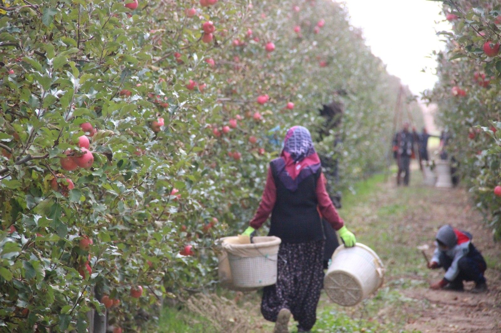 Genç yaşlı demeden bahçelere elma toplamaya giden kadın işçiler ise boş durmak yerine aile bütçelerine katkıda bulunduklarını söyledi.