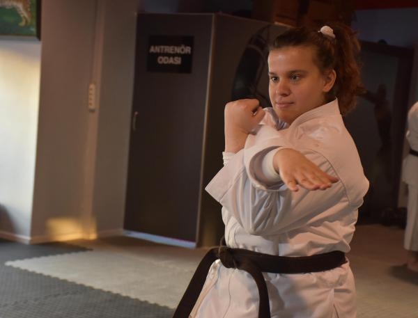 Karateyi çok sevdiğini söyleyen Sezen Kaya da "Dünya şampiyonu olmak istiyorum" diye konuştu. (DHA)