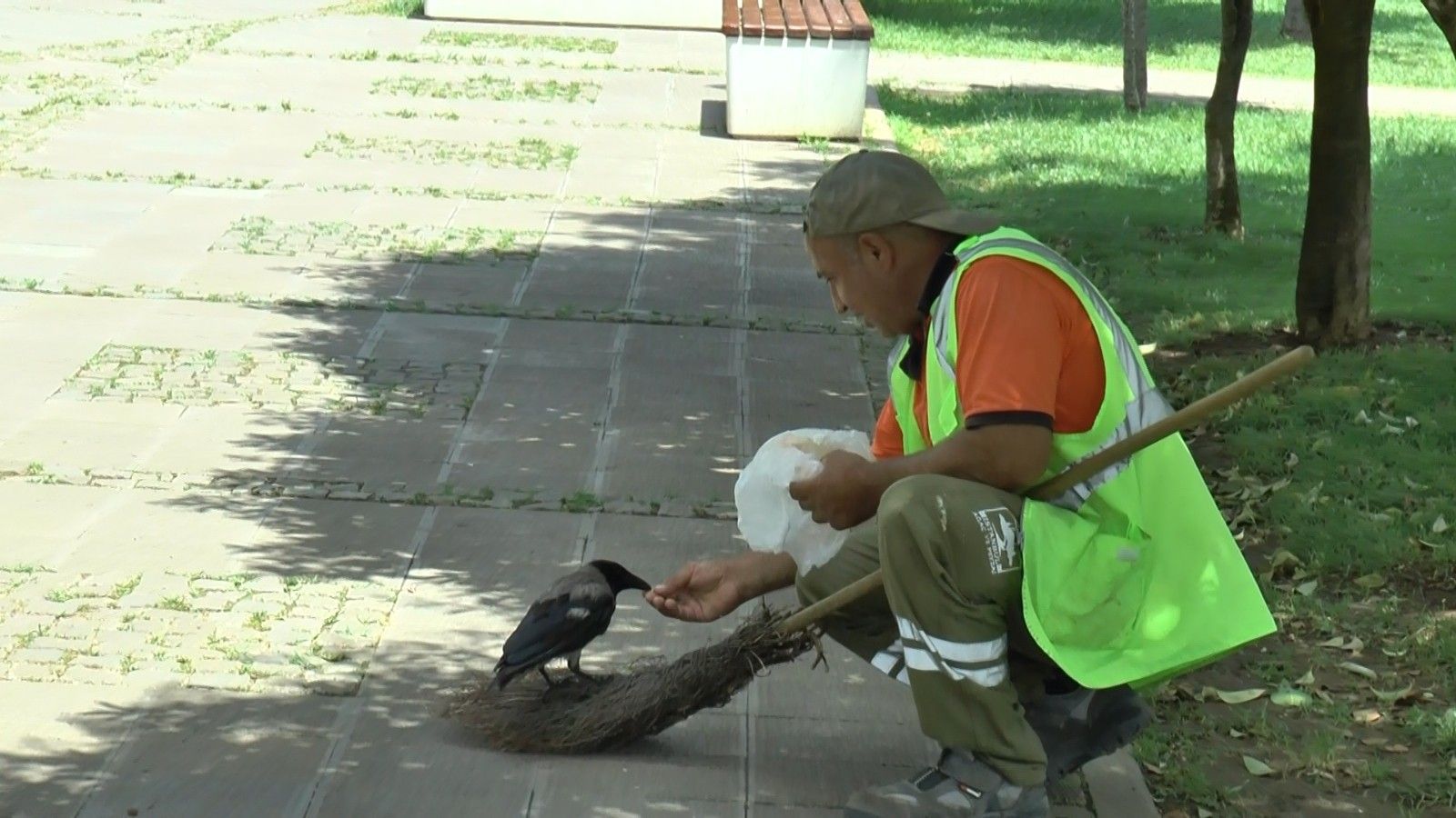 Kargayla olan dostluğuna değinen temizlik görevlisi Murat Nazlı, "Hayvan sevgim bizi güzel iki arkadaşa çevirdi. Beraber yemek yiyoruz, beraber geziyoruz. Ben çöpleri topluyorum, o da arkamdan gelip dağıtıyor. Müzik dinlemeyi çok sever. Her sabah işe başladığımda yanıma geliyor. Öğle saatlerinde de uyumaya gidiyor. Ben kargayı beslemeye başlayınca beni gören insanlarda beslemeye başladı" diye konuştu.