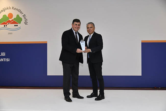 Karşıyaka Belediye Başkanı Dr. Cemil Tugay, ödülünü Muratpaşa Belediye Başkanı Av. Ümit Uysal’ın elinden aldı.