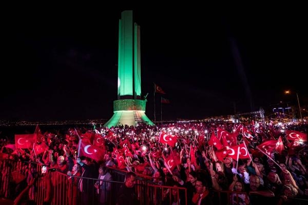 Cumhuriyetin 100. yılı dolayısıyla Karşıyaka Belediyesi'nin düzenlediği kutlamalar kapsamında fener alayı düzenlendi. Fener alayı için Karşıyaka Belediyesi önünde bir araya gelen coşkulu kalabalık, Çarşı içinden geçerek Atatürk, Annesi ve Kadın Hakları Anıtı'na yürüdü. Karşıyaka Belediye Bandosu'nun da eşlik ettiği binlerce vatandaş ellerinde Türk Bayrakları, dillerinde marşlarla Cumhuriyet'e sonuna kadar sahip çıkacaklarını haykırdı. Paramotor sürücüsü bir vatandaşın korteji gökyüzünden selamlaması da renkli görüntüler oluşturdu.