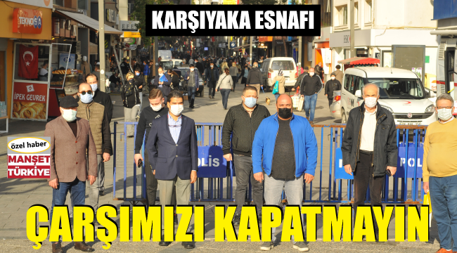 Bir grup Karşıyaka Çarsısı esnafı, İzmir Ticaret Odası Meclis Üyesi Halil Telli ve Belediye Meclis Üyesi, esnaf masası temsilcisi Mithat Salepçioğlu ile birlikte çarşı girişinde açıklamalarda bulundu.