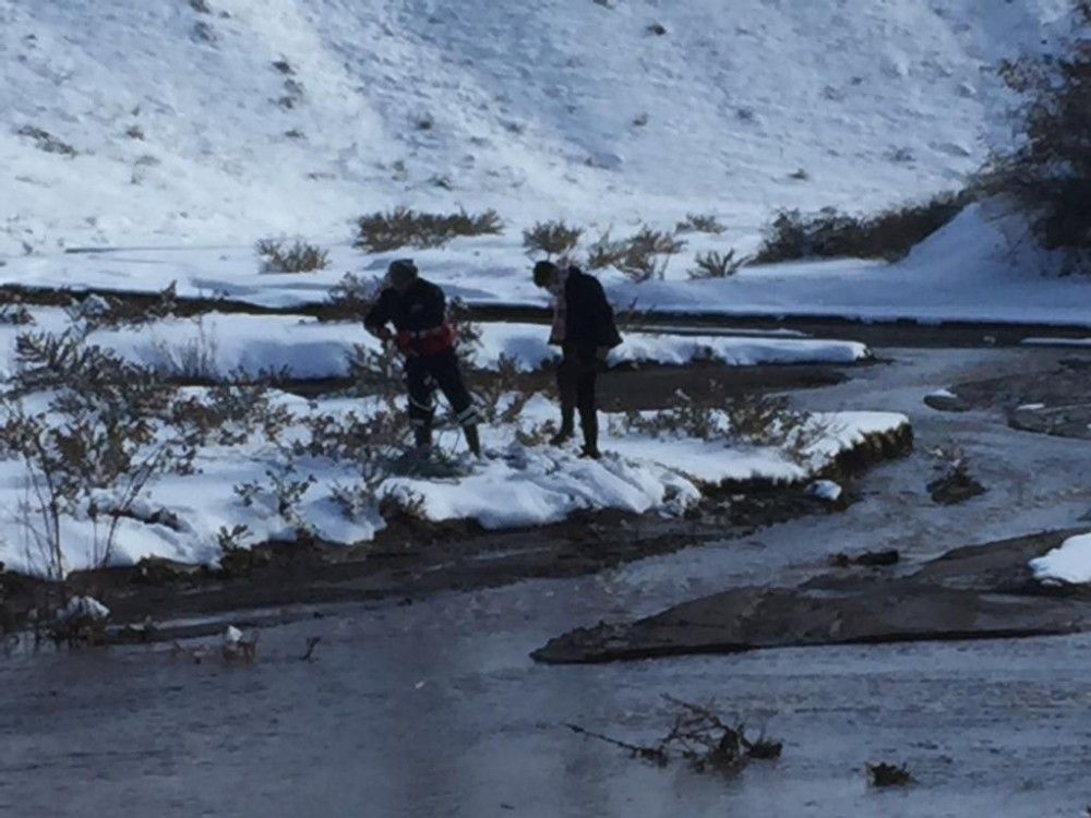 Adıyaman'ın Gölbaşı ilçesinde baraj göleti yakınlarında kar topu oynadığı sırada bataklığa saplanan çocuğu itfaiye ekipleri kurtardı.