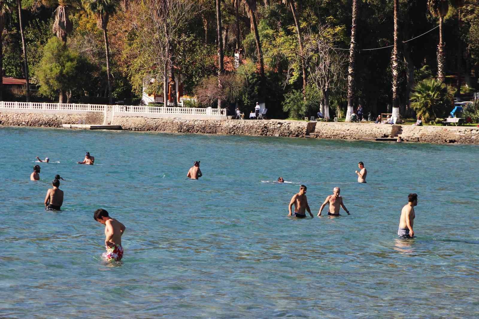 Oğlu ile deniz tadı çıkaran vatandaş ise, "Su çok güzel. Hava da çok güzel 29-30 derece sıcaklık var. Gayet güzel" derken, İstanbul'dan Muğla Sıtkı Koçman Üniversitesinde okumak için gelen öğrenci, "Değişik bir his. İstanbul'dan geliyorum. İstanbul'da bu havada bayağı bir soğuk oluyor. Burası çok değişik. Hava sıcak, şort, atlet, deniz, kum güneş" dedi.
