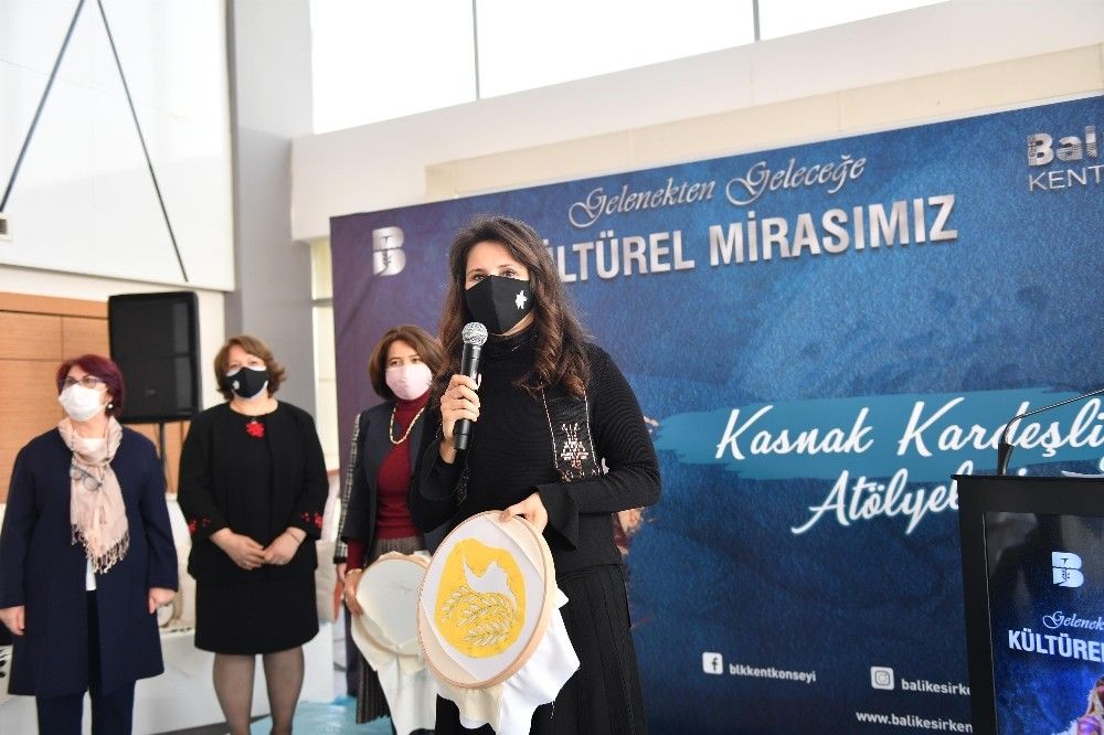 Kasnak Kardeşliği Atölyesi Proje Lansmanının açılış konuşmasını gerçekleştiren Türk Eğitim Vakfı Balıkesir Şube Yürütme Kurulu Başkanı ve Balıkesir Kent Konseyi Yürütme Kurulu Üyesi Jale Bayraktar; yardımlaşma ve dayanışma kavramının mihenk taşı olan imece usulüyle gerçekleştirerek oluşturulan 'Kasnak Kardeşliği Atölyesi' projesinde paydaş olmanın TEV için çok anlamlı olduğunu söyledi.