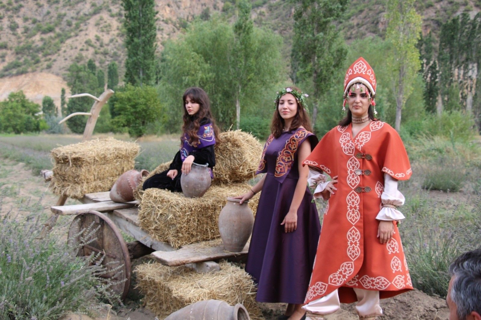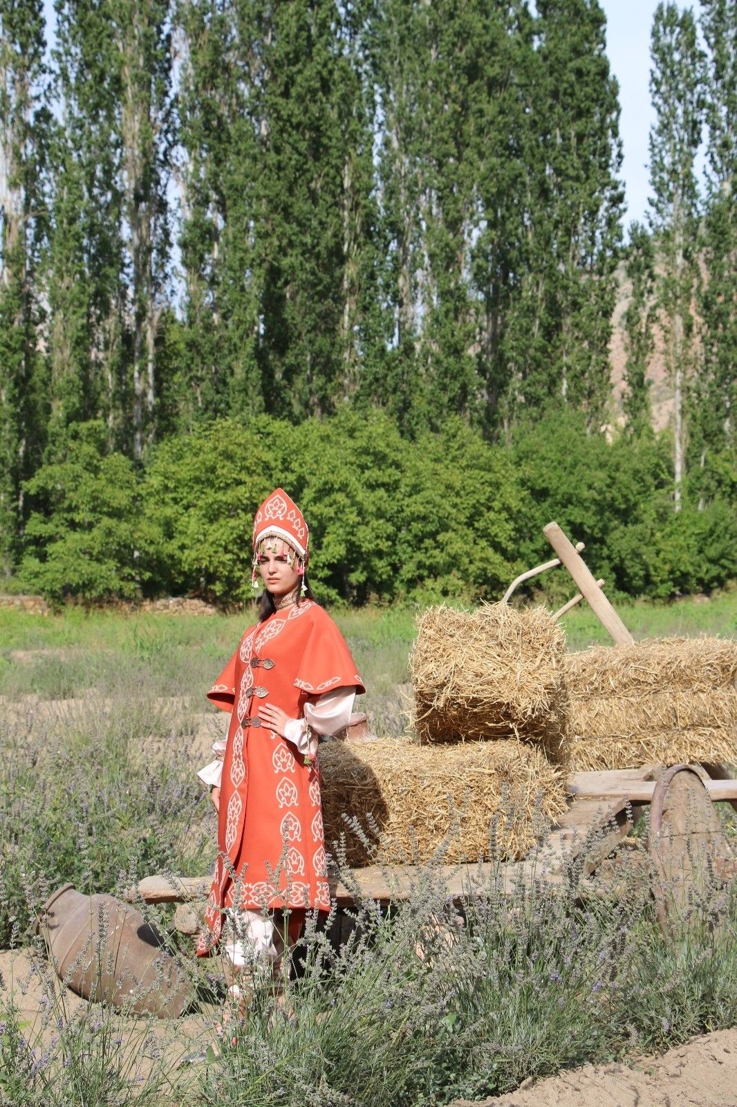 Erzurum'un Olur ilçesinde kaybolmaya yüz tutmuş Selçuklu motifli kıyafetleri giyen mankenler, yeşillikler arasında görsel şölen sundu.