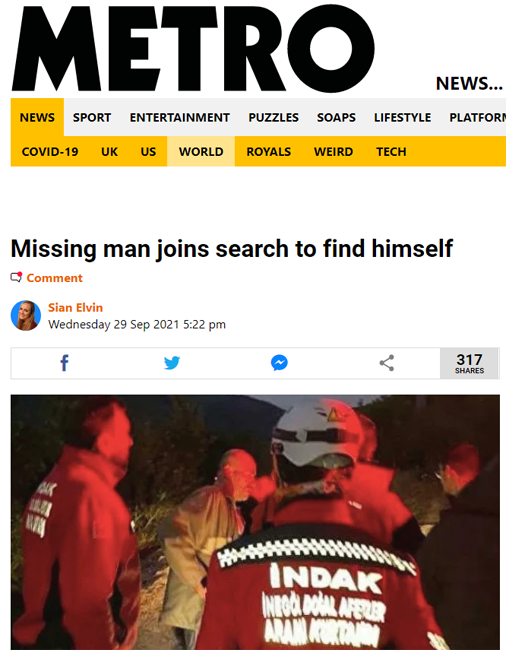 Metro: Kayıp adam kendini bulmak için aramaya katıldı