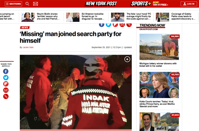 New York Post: 'Kayıp' adam kendisi için arama ekibine katıldı