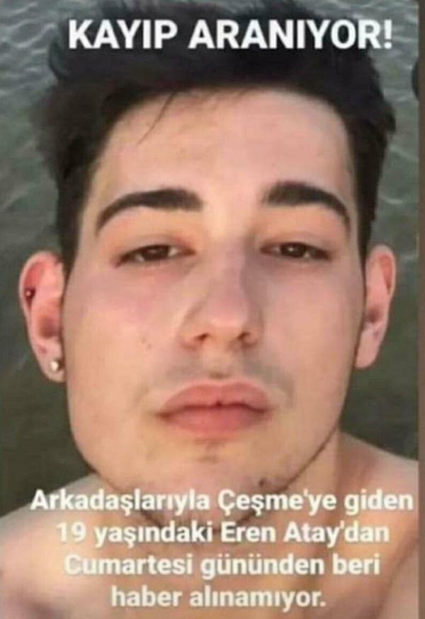 İzmir'de, 15 Temmuz'da arkadaşlarıyla birlikte eğlenmek için Çeşme'ye giden Veli Eren Atay'dan (19) 25 gündür haber alınamıyor. Yardım çağrısında bulunan Veli Eren'in annesi Ebru Atay, "Onu çok özledik. Acımız çok büyük. Elimde bir tek fotoğrafı kaldı. Kokusunu özledim" dedi.