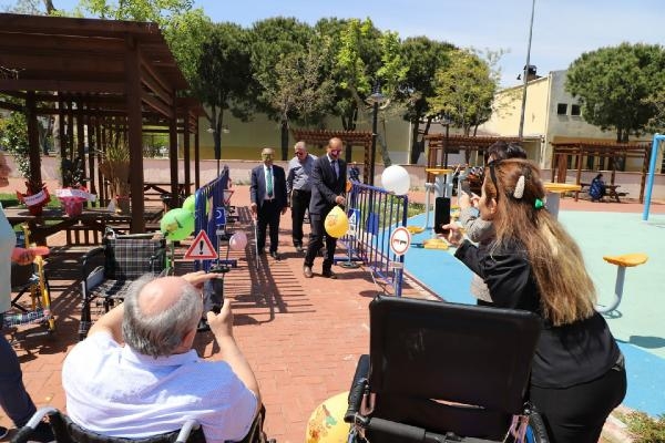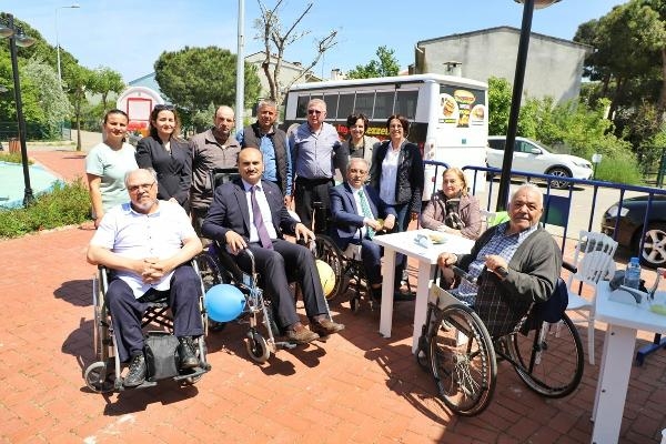 Gelibolu Belediye Başkanı Mustafa Özacar da, empati parkurunda tekerlekli sandalyeye binerek 'yürüme engelli bireylerin sıkıntıları daha iyi anladık' diye konuştu. (DHA)