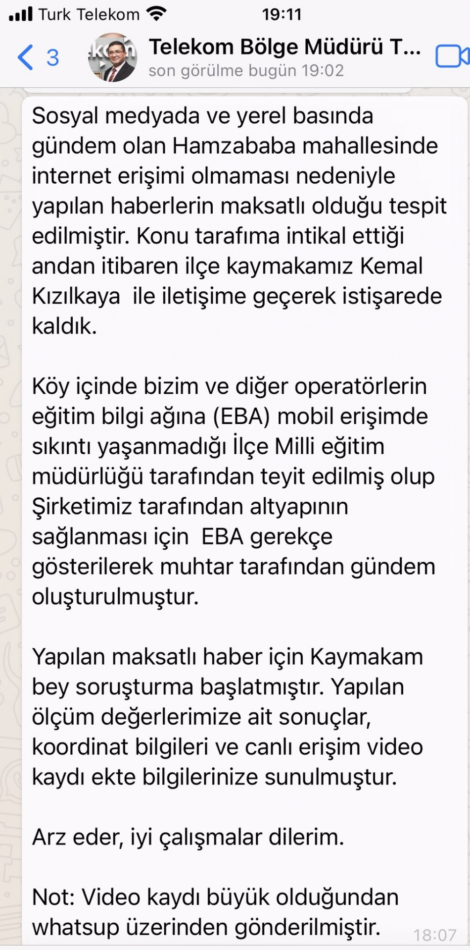 Vali Köşger, Telekom Bölge Müdürü'nden kendisine ulaşan bilgiyi sosyal medya hesabından 'çocukların sorunun çözülmesi'ni isteyenler için paylaştı.