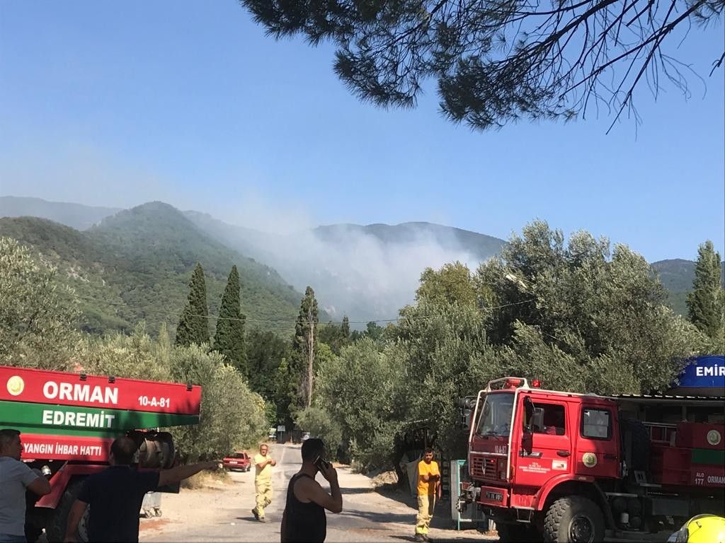 Arazinin sarp olması nedeniyle daha çok havadan müdahale yoluyla müdahale edilmeye çalışılan yangın için karadan da çok sayıda arazöz, su ikmal aracı, tanker ve yangın ekibi sevk edildi. Yangına Balıkesir Valisi Hasan Şıldak'ın koordinasyonunda oluşturulan özel ekip tarafından müdahale edilirken, rüzgarın etkisi ile yangının kuzey batı yönüne doğru devam ettiği, yangın bölgesinin zorluğa rağmen karadan da müdahale edildiği ifade edildi.