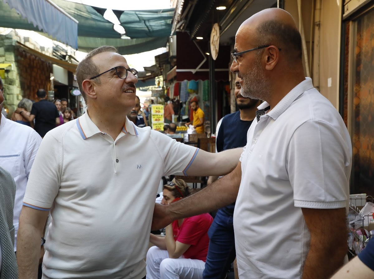 AK Parti İzmir İl Başkanı Sürekli ve AK Kadro, gün boyu esnafı dolaşarak Kemeraltı Esnaf Derneği, Hisar Camii Derneği ve Muhtarlığı da ziyaret etti. Kızlarağası Hanı esnafıyla da buluşan Sürekli; CHP’nin İzmir’de metropolde sokağa çıkmaktan imtina ettiğini yineleyerek şöyle konuştu: