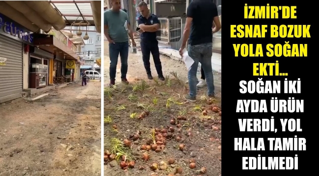 Kemeraltı'nda bozuk yola ekilen soğan çıktı!
