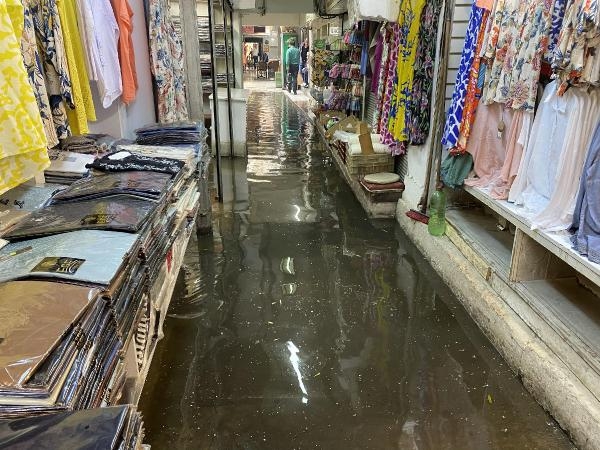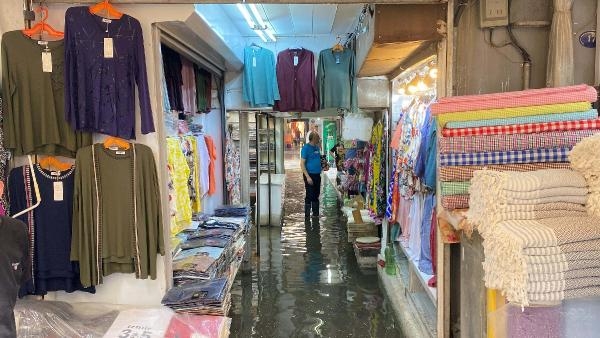 İZMİR'de etkili olan sağanak nedeniyle Tarihi Kemeraltı Çarşısı'ndaki handa iş yerlerini su bastı.