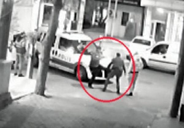 İZMİR'in Bornova ilçesinde M.G. (33), kendisini uyaran polis memuru Erol Yavuz Yiğit'in (44) sırtına çakı sapladı. Yaralı Yiğit, kaçan şüpheliyi etkisiz hale getirmek için bacağından vurdu. Bu anlar, çevredeki iş yerinin güvenlik kamerasına yansıdı.