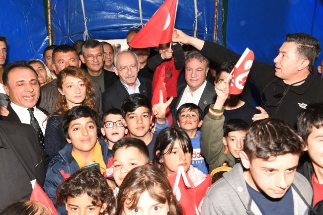 Kılıçdaroğlu, Başkan İduğ ile Bornova Belediyesi'nin çadır kentinde