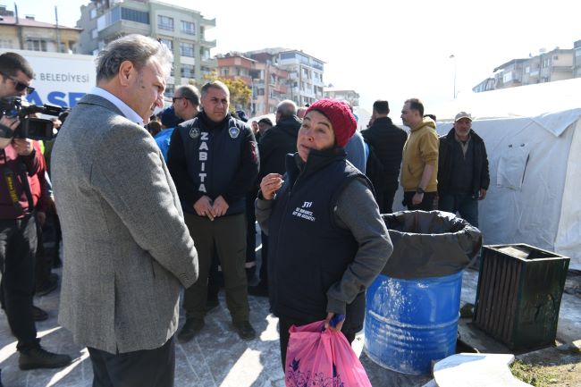 Bornova Belediye Başkanı Dr. Mustafa İduğ ise felaketin boyutlarının çok büyük olduğunu belirterek, “Sokak sokak gezdik, yaşananları yerinde gördük. Yıkım maalesef çok büyük. Kentte hasarsız bina neredeyse yok denecek kadar az. Uzun vadede yapılacak iş çok fazla ancak bir an önce barınma sorununun çözülmesi gerekiyor. Biz de Bornova Belediyesi olarak bu konuda üzerimize düşeni yapmaya çalışıyoruz. Yurt dışından temin ettiğimiz 2 bin 500 çadırı bölgedeki belediyelerimizin tespitleri doğrultusunda belirlenecek alanlara kuracağız. Tüm zorlukları ancak birlikte, dayanışma ile aşabiliriz” şeklinde konuştu.
