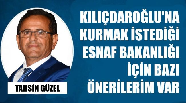 Sanayici-yazar Tahsin Güzel, CHP Genel Başkanı Kılıçdaroğlu'nun esnaf bakanlığı kuracağını açıklaması üzerine bir yazı kaleme aldı. İşte oyazı...