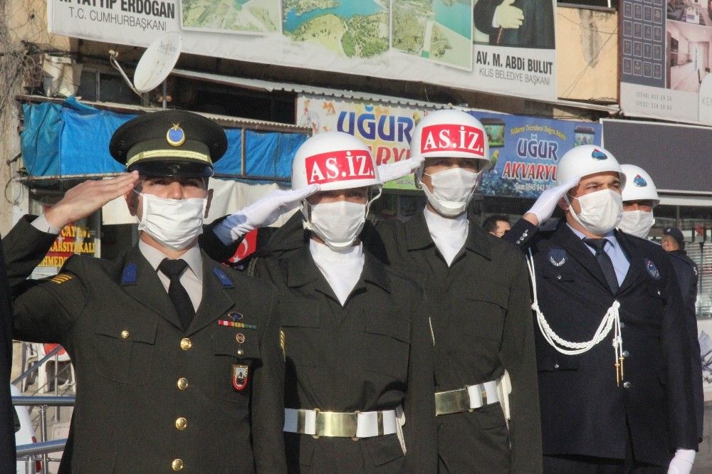 Cumhuriyet Alanı'nda düzenlenen törene, Kilis Valisi Recep Soytürk, Garnizon Komutanı ve 1'inci Hudut Alay Komutanı Piyade Albay Soner Oruçoğlu, Kilis Belediye Başkan Vekili Mehmet Fatih Yalçın, daire amir ve müdürlerinin yanı sıra sivil ve askeri erkan, siyasi parti il temsilcileri, sivil toplum örgütü temsilcileri katıldı.