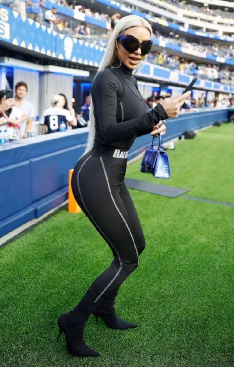 Kim Kardashian, oğlu Saint ile Dallas Cowboys ve Los Angeles Rams maçına gitti. Maçın devre arasında oğlunun fotoğrafını çekmek için stadyuma inen Kim'in o halleri, taraftarlarından da dikkatini çekti. Siyah topuklularıyla sahaya inen Kardashian, taraftarın tepkisini çekti.