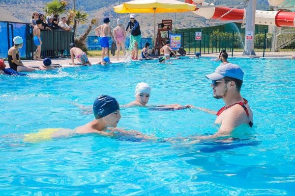Kınıklı çocuklar, Aquapark'ta yüzme öğreniyor