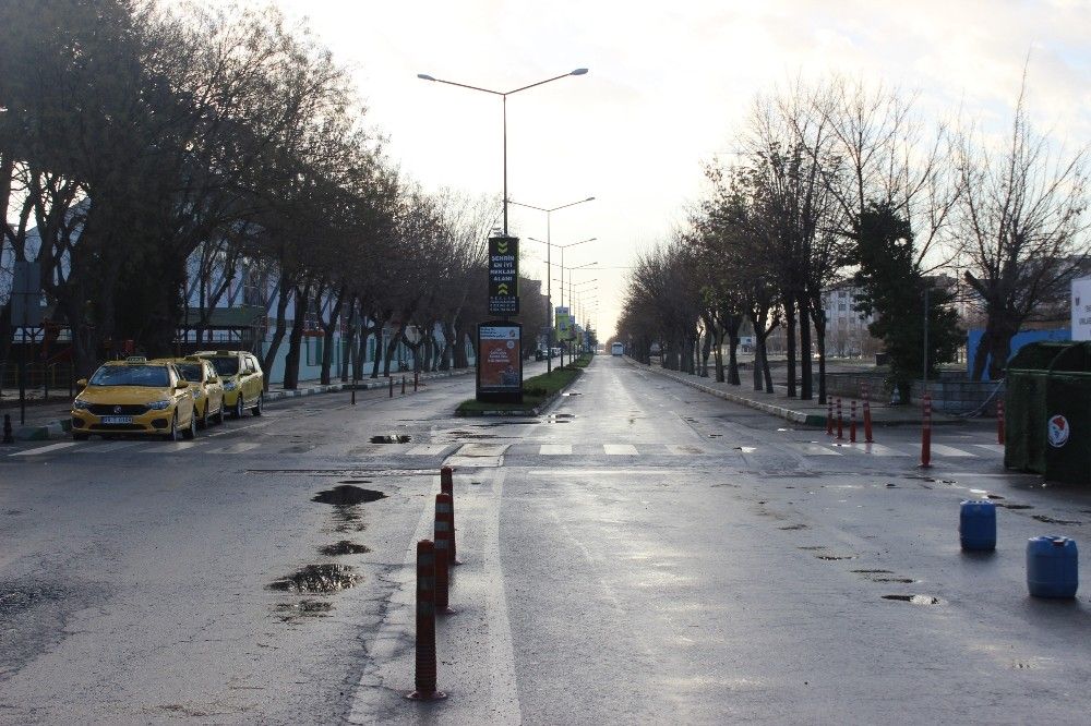 Korona virüs tedbirleri kapsamında yılbaşında uygulanan 80 saatlik sokağa çıkma kısıtlaması dün 21.00'de başladı ve pazartesi günü saat 05.00'e kadar sürecek. Yeni yılın ilk gününde sokağa çıkma kısıtlaması nedeniyle yollar ve meydanlar boş kaldı. Dün akşam mesai çıkışında meydanlarda, yollarda ve duraklardaki yoğunluktan eser kalmadığı görüldü. Cumhuriyet Caddesi de boş kalan meydanlardan birisi oldu. Kısıtlama kapsamında açılmasına müsaade edilen iş yeri sahipleri, yavaş yavaş kepenk açmaya başladı. Normalde insan kalabalığının oldukça yoğun olduğu meydanda kısıtlamadan dolayı sessizlik hakim oldu.