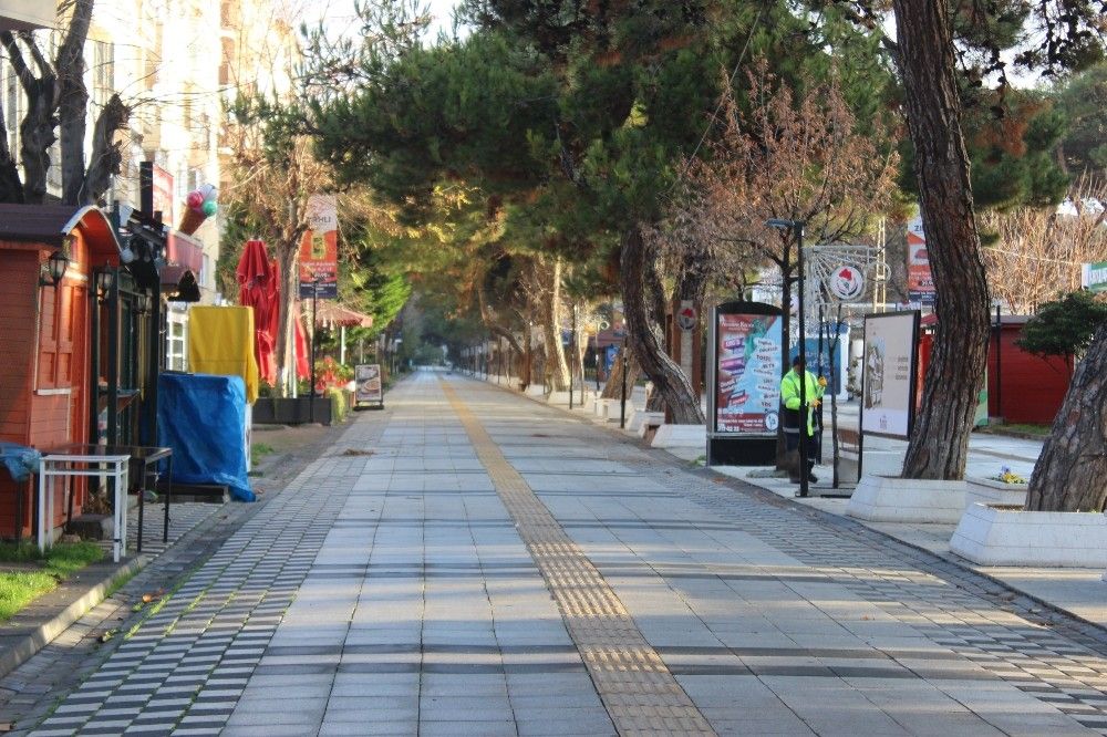 Korona virüs tedbirleri kapsamında ilan edilen sokağa çıkma kısıtlaması nedeniyle yeni yılın ilk gününde Kırklareli sokakları boş kaldı