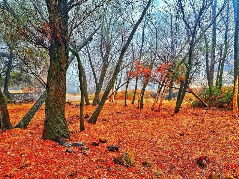 Sonbaharın gelişiyle yemyeşil tabiatın sarı ve turuncu gibi çeşitli renklere dönüştüğü Bahçede, bazı ağaçlar yeşil yapraklarını korurken bazıları ise sarı, turuncu ve mor yapraklarıyla eşsiz bir manzara oluşturuyor.
