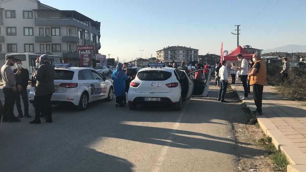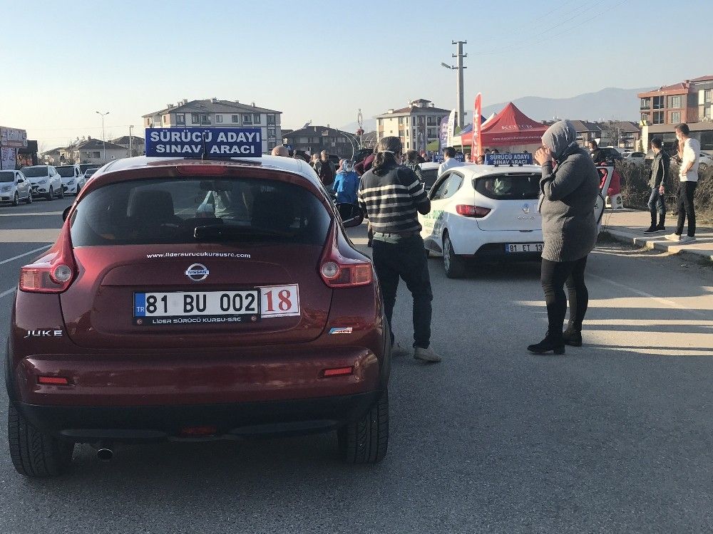 Düzce'de hafta sonu kısıtlamasından muaf tutulan 230 sürücü adayı, sınav heyecanı yaşadı.