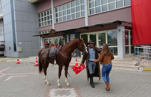 ÇANAKKALE Onsekiz Mart Üniversitesi'nde (ÇOMÜ) okuyan kızı Zeynep Kerse'ye (22) verdiği sözü tutan, Türkiye Binicilik Federasyonu'nda lisanslı 'endurance binicisi' olan Selman Kerse (51), İstanbul'un Silivri ilçesinden atıyla yola çıkarak 300 kilometreden fazla yolu 5 günde gidip, ÇOMÜ Terzioğlu Yerleşkesi'nde kızıyla buluştu.