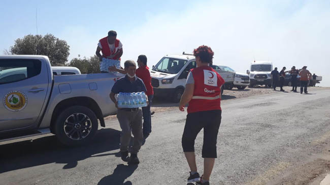 Türk Kızılay Urla, Kızılay Kadın Urla, Genç Kızılay Urla ve Kızılay Urla Engelsiz Kulüp üyeleri ve gönüllüleriyle yangın alanına ulaşarak alanda, soğuk sandviç, ayran, su, ikramlıklar meyve suyu dağıttı. Ayrıca yangına müdahele eden ekiplere destek amaçlı kâğıt havlu, ıslak mendil, maske, kafa lambası, battaniye, soğuk su ve ayran için buzlar hazırlandı. Yanıklara karşı yanık merhemi , suni gözyaşı damlası, oksijenli su gibi acil sıhhi yardım malzemeleri de temin edildi.