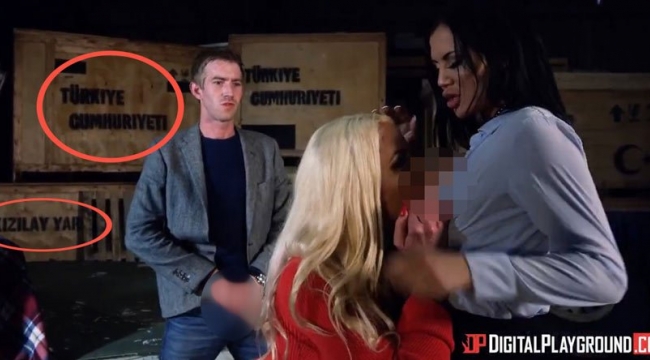 Sosyal medya kullanıcılarının paylaştığı video görüntüleri bir hangarda geçiyor. ABD merkezli bir porno sitesinde yer alan görüntülerde ahşap kutular görünüyor. Videoda yer alan kutularda “Türkiye Cumhuriyeti Türk Kızılay” ibareleri yer alıyor.