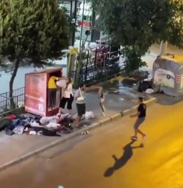 İZMİR'in Karabağlar ilçesinde, ihtiyaç sahibi kişiler için yerleştirilen giysi toplama kutusundaki kıyafetleri çalan 3'ü kadın 5 şüpheli, polis ekiplerince yakalandı. Hırsızlık anı ise bir vatandaş tarafından cep telefonuyla kaydedildi.