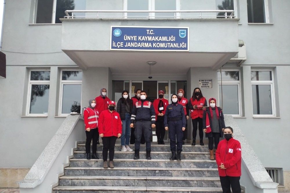 Ünye Kızılay Kadın Kolları Yönetimi, şehrin bir çok noktasında görevli Emniyet, Jandarma Kontrol Merkezleri ile 112 Sağlık çalışanlarına ziyarette bulunarak tatlı, kurabiye ve sıcak çay ikramında bulundu.