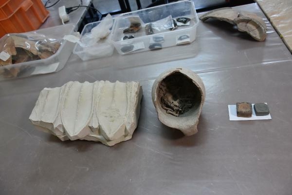 Ayrıca dönemin yapılarında kullanılan malzemeye de rastladıklarını vurgulayan Ersoy, "Kentteki bir yapıyı süsleyen mimari bir blok. Taş mermer değil kireç taşı. Urla'ya özgü. Çok rahat yontulabilen ve bölgede rahat bulunabilen Klazomenai ait bir taş. Klazomenai'de yaşayanlar, M.Ö. 3 binden beri bu taşı, yapı malzemesi olarak kullanmışlar. Bugün bile bu tür taşların Urla'daki yapılarda kullanıldığını biliyoruz. M.Ö. 6'ncı yüzyıla ait bir silmenin (duvar üzerinde profile yerleştirilen ve dönen parça) süslemesi. Üzerindeki çok özenle yapılmış, yaprak motifleri görülmekte. Bu da kente ait olan Arkaik dönemdeki etkileyici yapıların süslerinden biri" diye konuştu. (DHA)