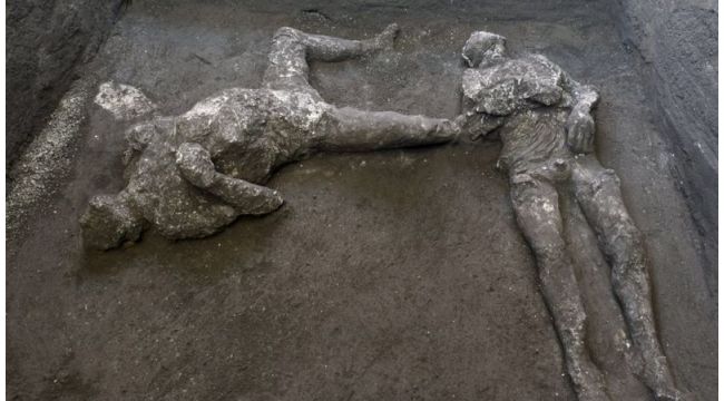 M.S. 79 yılındaki patlamadan kaçmaya çalışırken ölen ve küllerin altında kalan 2 kişinin 18-25 yaşları arasındaki bir köle ile 30-40 yaşları arasındaki patronu olduğu tahmin ediliyor.