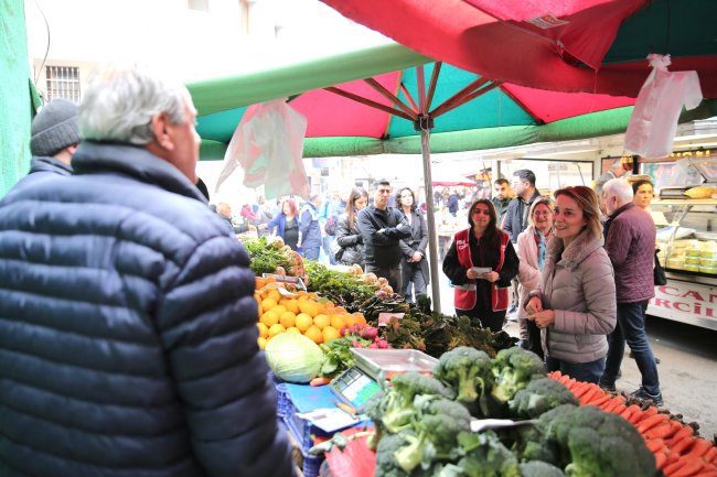 CHP Konak Belediye Başkan Adayı Nilüfer Çınarlı Mutlu, hafta sonunda da saha mesaisine devam etti. Pazar yerlerini ziyaret ederek esnaf ve mahalle sakinleriyle bir araya gelen Mutlu’nun adresi bu kez Alsancak Pazar Yeri oldu. “Geliyor Nilüfer Başkan geliyor” tezahüratlarıyla karşılanan ve tezgahları tek tek gezen Mutlu’ya, “Kadın bir aday görmekten çok mutluluk duyuyoruz. Oyumuz size... Allah’ın izniyle seçimi alacağız, İstanbul’u da alacağız” sözleriyle destek verildi. Yıllardır alışveriş yaptığı pazar esnafına isimleriyle hitap ederek hayırlı işler dileyen Mutlu, “Ben tutamayacağım sözler vermem. Her yeri pırıl pırıl yapacağız. Desteğiniz için çok teşekkür ediyorum. Konak’ta bambaşka bir belediyeciliği hayata geçireceğiz. Seçimden sonra da daima yanınıza gelip taleplerinizi dinlemeye devam edeceğim” dedi. Mutlu ayrıca pazar yerinin acil ihtiyaçlarını da fotoğraflayarak belediyenin ilgili birimlerine aktardı.