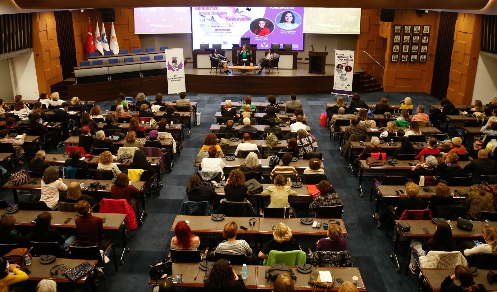 25 Kasım Kadına Şiddete Karşı Uluslararası Mücadele Günü kapsamında düzenlenen Demokrasi, İnsan Hakları ve Kapsayıcılık konulu söyleşi İzmir Ticaret Odası Meclis Salonu’nda gerçekleştirildi. Konak Belediyesi, Yaşar Üniversitesi Kadın ve Aile Çalışmaları Uygulama ve Araştırma Merkezi Müdürlüğü, Ege Kadın Buluşması Platformu, Uçan Süpürge Vakfı ve Dominik Cumhuriyeti Büyükelçiliği ortak organizasyonu ile gerçekleştirilen söyleşinin konukları Dominikli Mirabal Kardeşlerden Minerva Mirabal’in kızı Minou Tavarez Mirabal ile Siyasetçi Yazar Elfin Tataroğlu oldu. Moderatörlüğünü Yaşar Üniversitesi Kadın ve Aile Çalışmaları Uygulama ve Araştırma Merkezi Müdürü Prof.Dr. Huriye Toker’in yaptığı söyleşiye Konak Belediye Başkan Yardımcısı Mustafa Anıl Feroğlu, İzmir Büyükşehir Belediye Başkanı Tunç Soyer’in eşi Neptün Soyer, Dominik Cumhuriyeti Büyükelçiliği Temsilcisi Laila Gonzalez ile çok sayıda kadın sivil toplum kuruluşu temsilcileri ile gençler yoğun katılım gösterdi. Söyleşinin açış konuşmasını yapan Ege Kadın Buluşmaları Platformu Koordinatörü Şengül Baysak, hayatını demokrasiye, insan ve kadın haklarına, eşitliğe ve ayrımcılığa karşı mücadeleye adamış bu nedenle ülkesinde olduğu kadar uluslararası alanda da tanınmış politikacı, devrimci, insan hakları savunucusu Minou Mirabal ile siyasetçi yazar Elfin Tataroğlu’nu konuk etmekten büyük mutluluk ve onur duyduklarını söyledi. Baysak, “Haklarımızdan ve yaşamlarımızdan asla vazgeçmiyoruz, İran ve Afgan kız kardeşlerimizin mücadelesini de saygılarımızla selamlıyoruz” dedi.