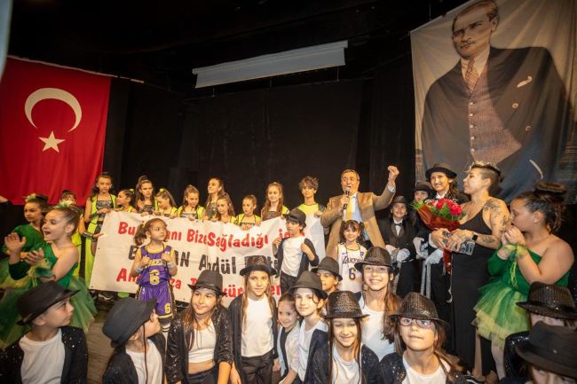 Gösterileri ilgiyle izleyen Konak Belediye Başkanı Abdül Batur, sahnede çocuklarla bir araya gelerek hepsini tek tek kutladı. Konaklı gençlerin Polonya’da ülkemizi temsil ettiğini, Türkiye’de çeşitli yarışmalardan 1, 2 ve 3.’üncülük derecelerini toplayarak İzmir’e getirdiklerini hatırlatan Başkan Batur, büyük gurur yaşadıklarını dile getirerek, “Ne zaman çocuklarımız ve gençlerimizle bir araya gelsem, içim rahatlıyor. Çünkü bu ülkenin geleceği çocuklarımız, gençlerimiz ve hepsi Atatürk’ün ışığındalar. Hiçbir şekilde umutsuz olmayacağız, umut her zaman devam ediyor diye konuştu.