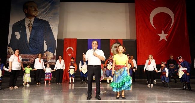 İzmir Konak Belediyesi’nin gelenek haline gelen ve yıl boyu heyecanla beklenen Halk Oyunları Şenliği 17’nci kez merhaba dedi. 7’dn 77’ye halk dansçılarının sahnede Anadolu’nun her yöresinden halk oyunlarını sergilediği şölene ev sahibi Konak Belediye Başkanı Abdül Batur’la birlikte Konak Kaymakamı Gökhan Görgülüarslan ve eşi Nihal Görgülüarslan, CHP Konak İlçe Başkanı Ozan Ali İlgazi ve Konak Belediyesi Meclis Üyeleri katıldı.
