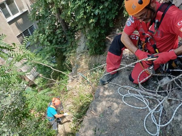 Konak Mithatpaşa Caddesi'nde bulunan ağaçlık bölgede, bir ağacın apartmanın üzerine devrilmesi ile yaşanan olayda Konak Belediyesi ve AKUT ekipleri kısa sürede olay yerine giderek müdahalede bulundu. Olayın kayalık ve aşırı eğimli bir bölgede meydana gelmesi, devrilen ağacın kaldırılmasını güçleştirirken, ekipler can ve mal kaybının yaşanmaması için gayret gösterdi. Yapılan çalışmalar sonucunda apartmanın üzerine devrilen ağaç başarılı bir şekilde kaldırılırken, çevre korumaya alındı. Yapılan kontrollerde kayalık bölgede bulunan diğer iki ağacın daha devrilme riski taşıdığı tespit edilirken, hem ağaçları koruma altına almak hem de tehlikeli bir durum yaşanmasının önüne geçmek için gerekli önlemler alındı. Tehlike yaratan iki ağacın devrilmesinin önüne geçmek için halatlar yardımıyla, çelik dübelle duvara sabitleme işlemi gerçekleştirildi. (DHA)