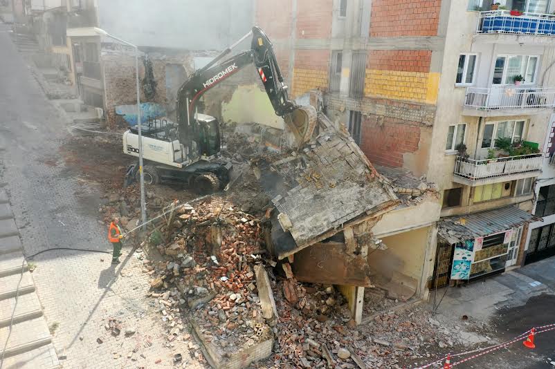 Konak Belediyesi Fen İşleri Müdürlüğüne bağlı yıkım ekipleri, Halilrıfatpaşa Caddesi üzerinde bulunan, vatandaşın can ve mal güvenliği ile sağlığını tehdit eden metruk binanın yıkımını gerçekleştirdi.