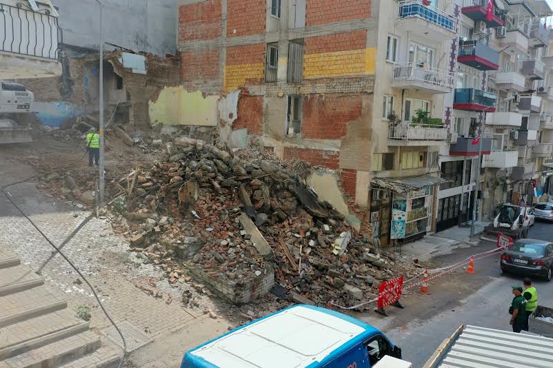 Konak'ta tehlike saçan binanın yıkımı gerçekleşti