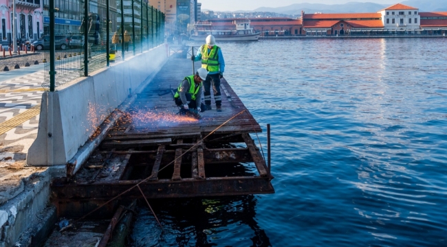 İzmir Büyükşehir Belediyesi, deniz suyunun etkisiyle çürüyerek yurttaşların can ve mal güvenliğini riske atan Konak Pier ve Pasaport Vapur İskelesi arasındaki üç seyir terasının sökümünü başlattı.